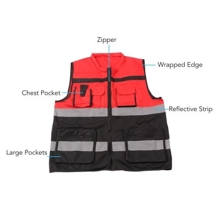 Safety Reflective Work Vest Red Black Blocking Zipper Front Safety Vest Part