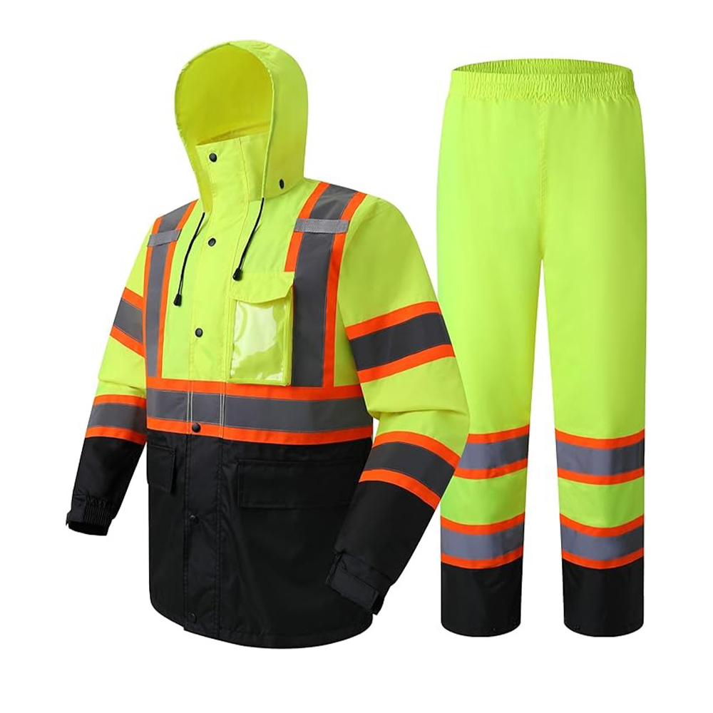 Hi-Vis Reflective Safety Rain Jacket and Pants for Men Women Waterproof Rain Gears for Farming Fishing Work