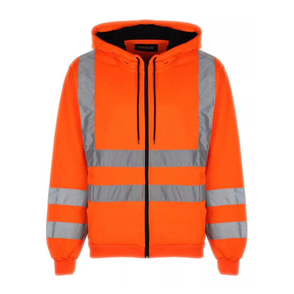 Hi Vis Visibility Safety Hooded Zip Sweatshirt Work Jacket Top Hi vis Hoodie