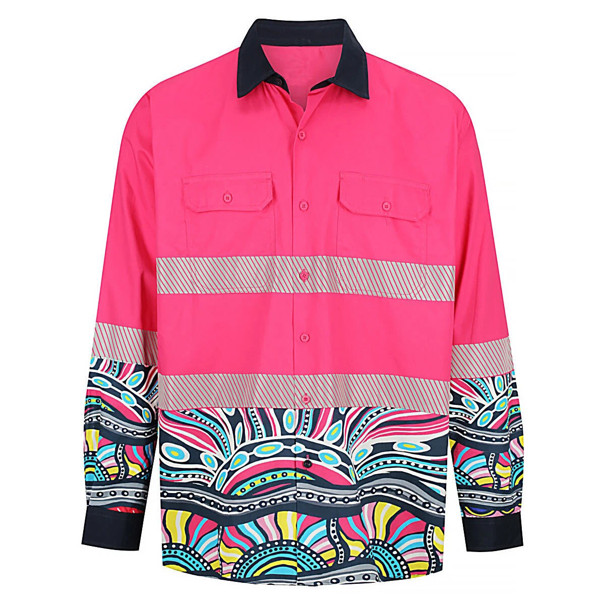 Hi-Vis Work Wear Pink Long Sleeve Shirt Unisex Design Fashion Pockets Safety