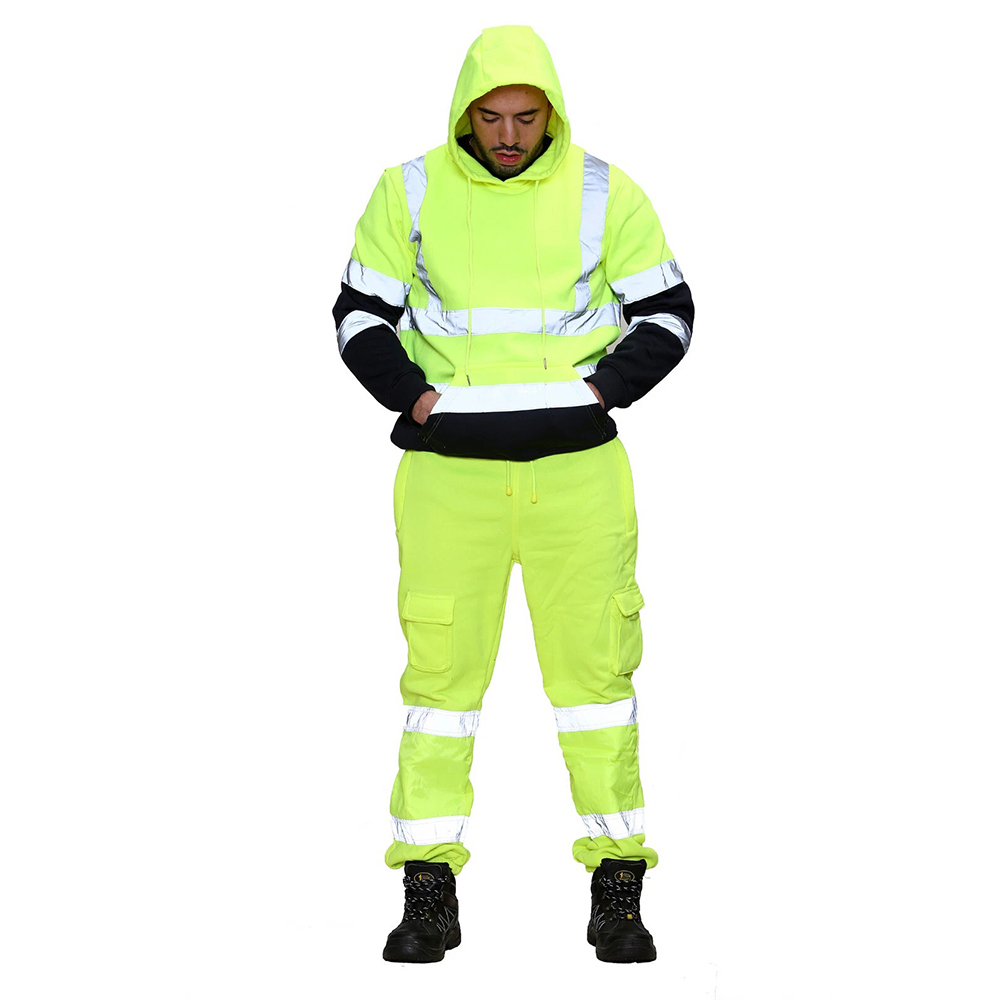 Mens Hi Viz Vis Work Fleece Bottoms Joggers Safety Sweat Pants Jogging Trousers