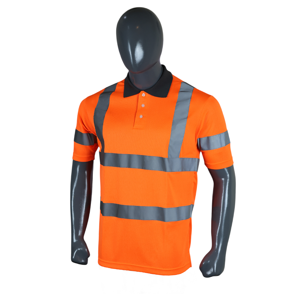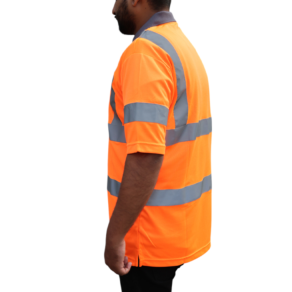 HI VIS POLO T SHIRTS MENS HIGH VISIBILITY VIZ REFLECTIVE TAPE WORK WEAR TEE TOP